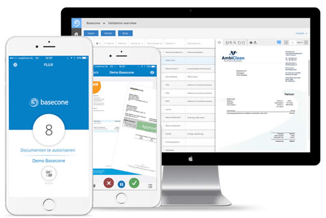 Met slechts één swipe verstuur je de facturen en/of declaraties naar Basecone. Alle facturen en declaraties kunnen makkelijk worden gecontroleerd en verwerkt in de boekhouding.